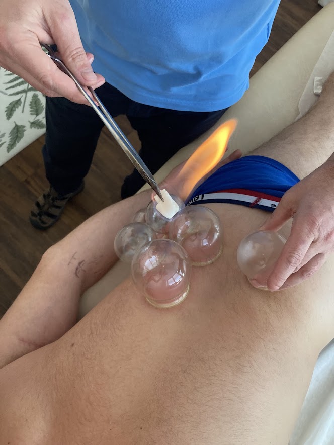 využívání podtlaku ohnivé baňky, která uvolni svalové bolesti